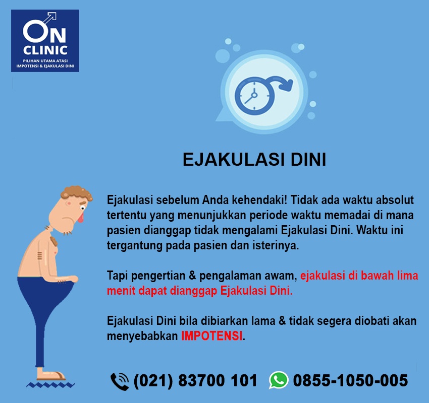 On Clinic merupakan jaringan layanan kesehatan yang khusus dapat mengatasi problem seksual pria, yaitu EJAKULASI DINI & IMPOTENSI.
